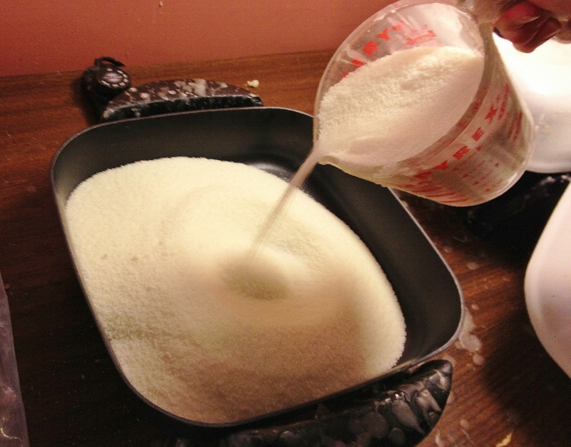 Put skillet on “warm” and add as much beeswax as you like for the ratio you are looking for. I use a 5:1 beeswax:resin ratio for Encaustic Jewelry; I use 7:1 for Encaustic Casting; I use an 8:1 for Encaustic Painting; and I use a 9:1 for my beginner Encaustic Painting Students, which is who this batch is for.