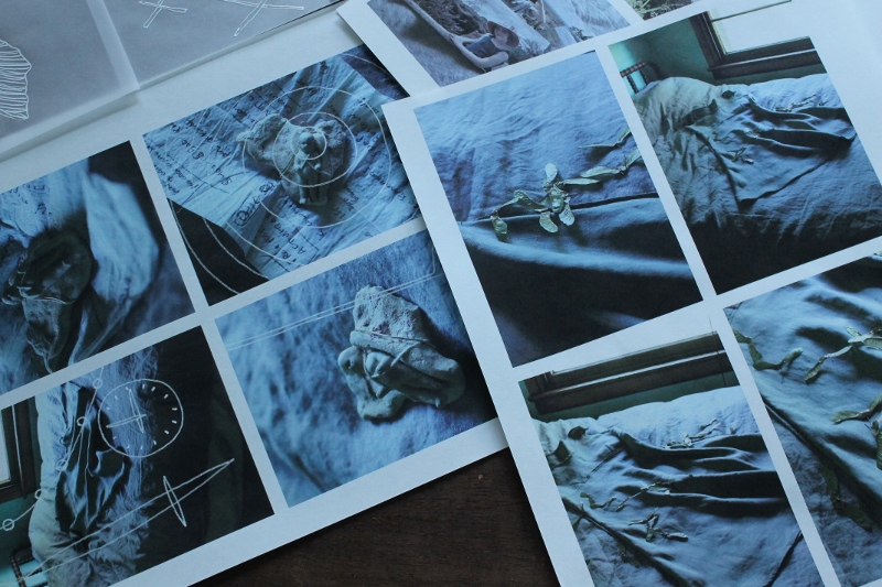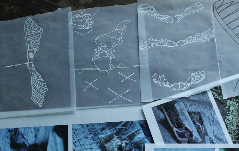 They each got a photo session, the dress I covered in a sprinkling of maple tree helicopters, which I had preserved this year, as I had planned on drawing them as much as I could. But now, scattering them all over the linen-on-linen bed, I was reminded of the scene in the Little Women movie, where Beth’s bed is covered in rose petals.
